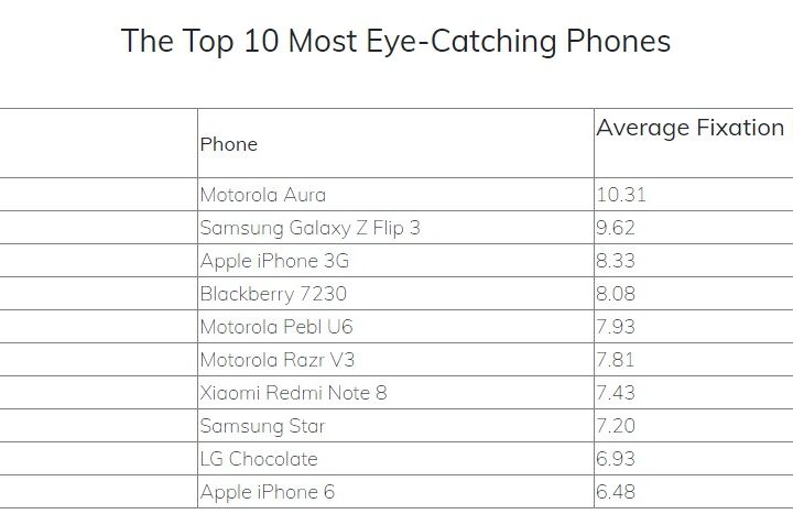 Según el estudio de Mozillion, los participantes pasaron una media de 10.31 segundos observando este particular teléfono.