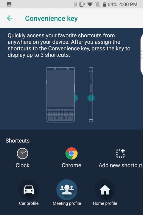 Hay varios perfiles diferentes para establecer Convenience Key. Para configurar el perfil predeterminado, dirígete a Configuraciones> Accesos directos y gestos y selecciona la tecla Convenience. Presiona el ícono Agregar atajo nuevo y selecciona la aplicación apropiada. Repite este proceso hasta que tengas tres aplicaciones seleccionadas. Una vez que hayas personalizado tus aplicaciones con la tecla Convenience Key correspondiente, puedes tocar la tecla desde cualquier pantalla para seleccionar entre las aplicaciones que elegiste.