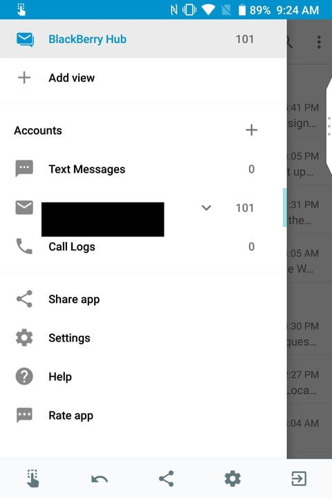 Si deseas configurar Blackberry Hub simplemente toca el ícono de Menú, identificado con las tres líneas horizontales, y luego presiona el ícono +, al lado de las cuentas.