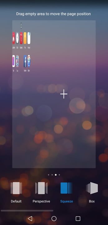 Las transiciones te permiten cambiar la animación utilizada cuando te mueves de una pantalla a otra o abre una aplicación. Para cambiar la transición predeterminada, toca prolongadamente la pantalla de inicio y presiona el ícono de Transiciones. Toca las diferentes opciones de transición para obtener una vista previa de la animación. Una vez que selecciones tu transición ideal, toca en un área vacía de la pantalla de inicio para habilitarla.