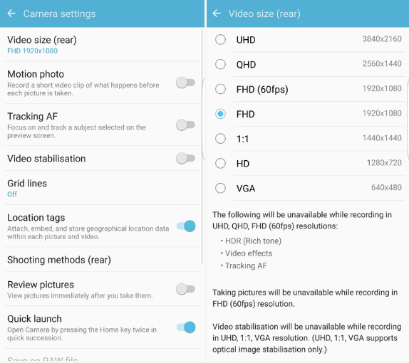 Las fotos y los videos son los archivos que más espacio ocupan en tu Android. A pesar de que la cámara varía dependiendo del dispositivo, recomendamos que mires tu configuración y la cantidad de espacio que tienes disponible. Entre más alta sea la resolución de las fotos, más espacio tomará. Modelos como HDR y 4K toman más espacio.