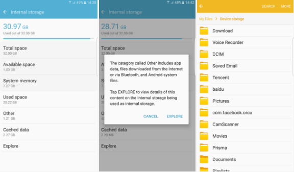 Si tienes documentos viejos, videos y otros archivos en tu dispositivo Android que no necesitas, deshazte de ellos. Para hacerlo dirígete a Configuración>Almacenamiento>Otro o Misceláneo y pulsa Explorar. Después selecciona una entrada para borrarla.
