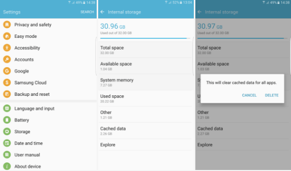 Algo que puedes hacer sin ningún riesgo es limpiar el caché. Para aplicaciones que no utilizas con frecuencia, esta herramienta vale la pena ser utilizada. Puedes hacerlo ingresando a Configuración>Aplicaciones >[Aplicación en cuestión]>Limpiar Cache. Las instrucciones varían dependiendo del modelo, pero los pasos son parecidos para en todos los modelos.