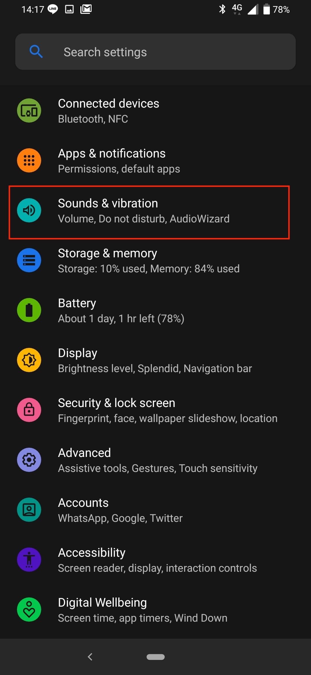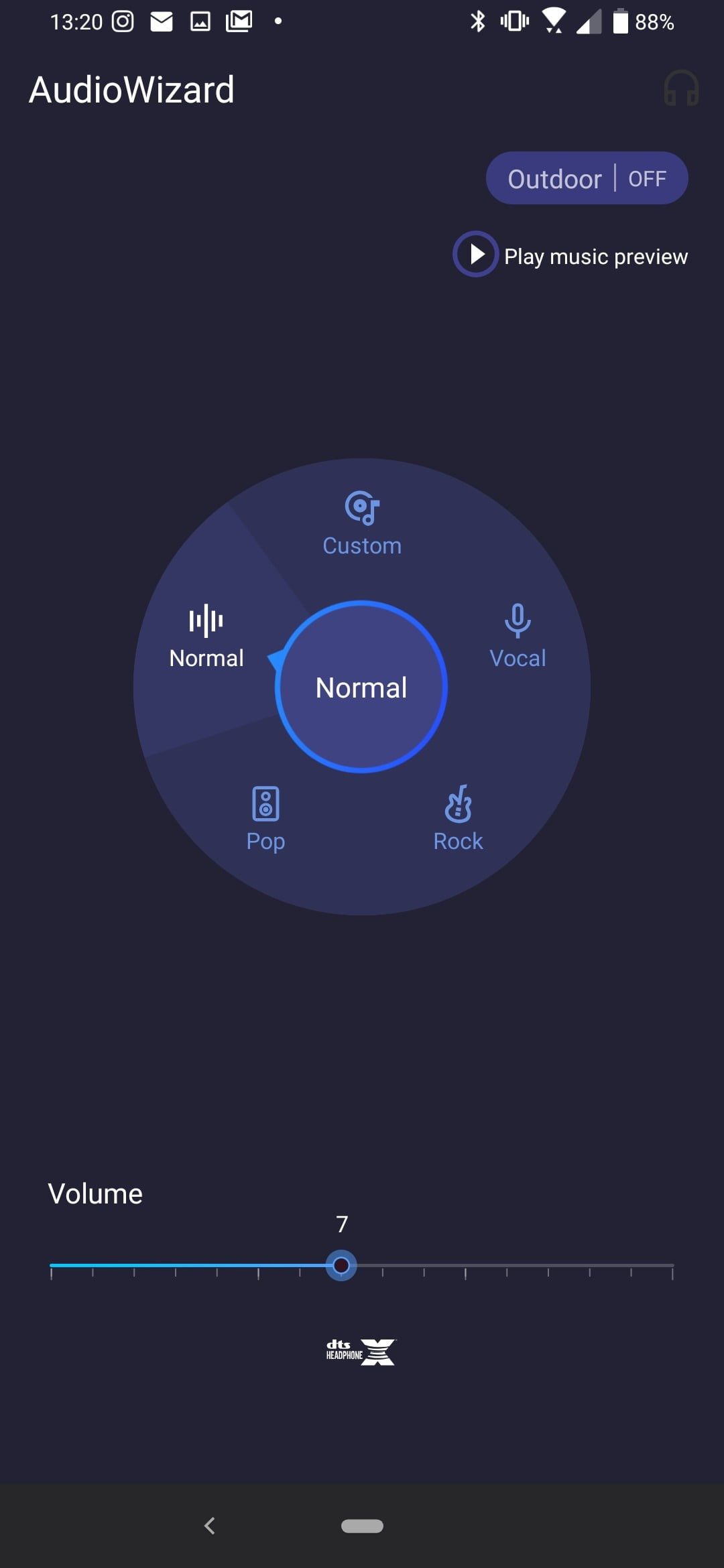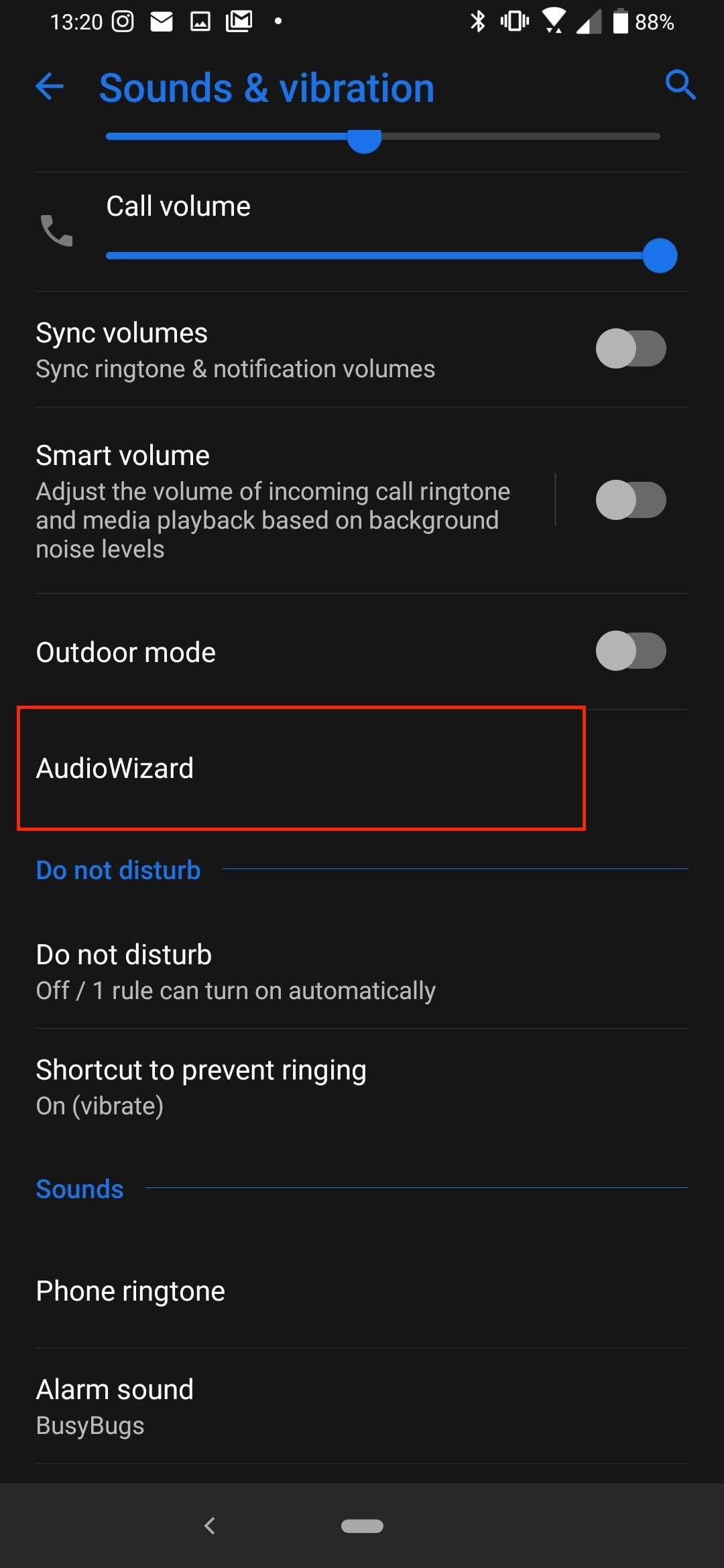 Abre Configuración>Sonidos y vibración y, a continuación, busca AudioWizard. Toca en él y, a continuación, selecciona uno de los perfiles de audio predeterminados (Normal, Rock, Pop o Vocal) o toca en Personalizar para crear y guardar el tuyo propio. En la parte superior derecha de la pantalla da la posibilidad de probar el sonido con el perfil que hayas elegido, si no tienes música lista para escuchar.