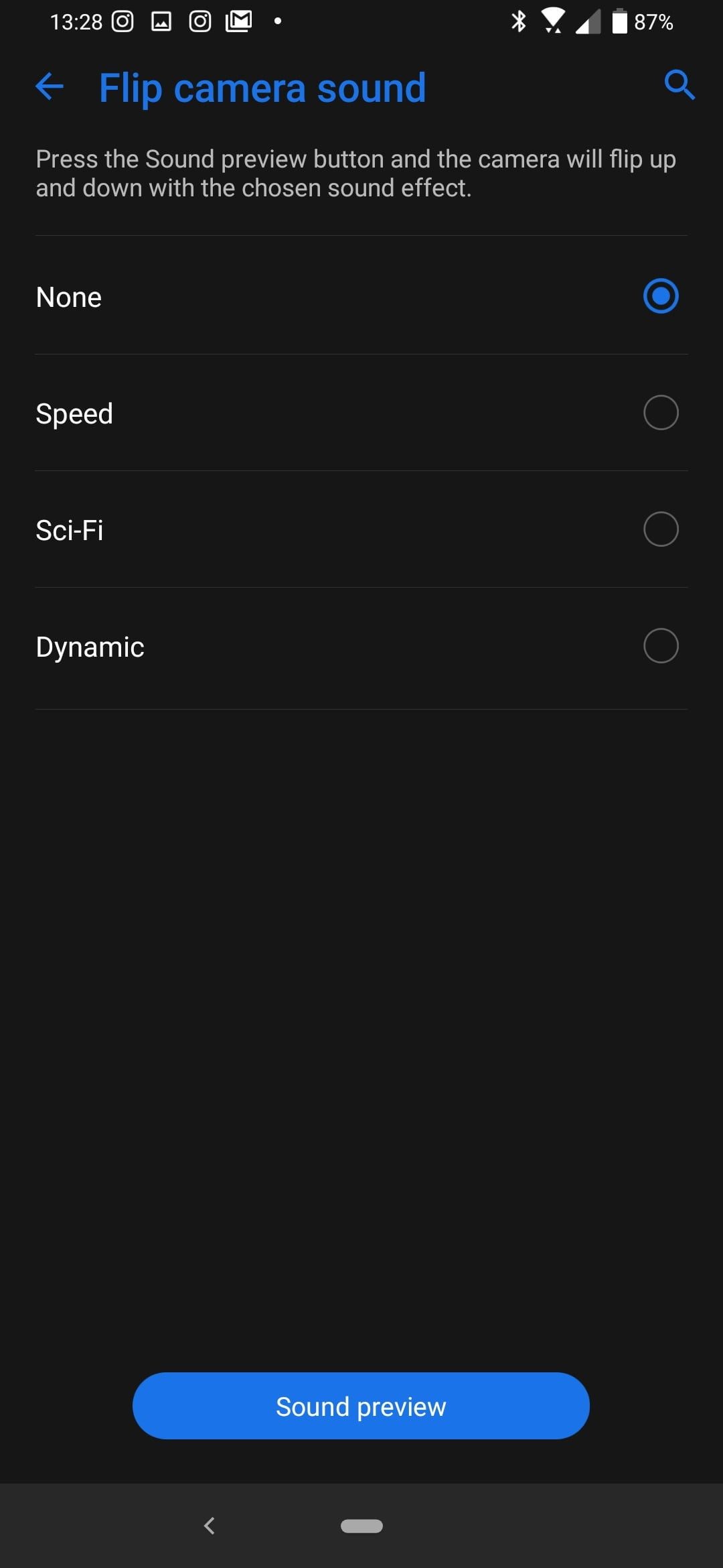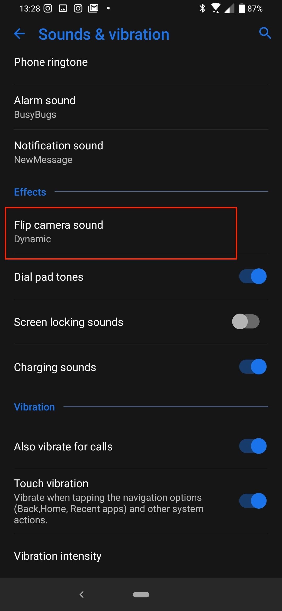 Los engranajes hacen que la Flip Camera suene muy mecánica, y algunos prefieren enmascararla con un divertido efecto de sonido. En Configuración>Sonidos y vibración, encontrarás la opción Voltear sonidos de cámara. Toca ahí y, a continuación, preescucha cada uno antes de decidir. Nos encanta el sonido de los engranajes mecánicos, pero también nos gusta el efecto Dynamic si prefieres algo un poco más divertido.