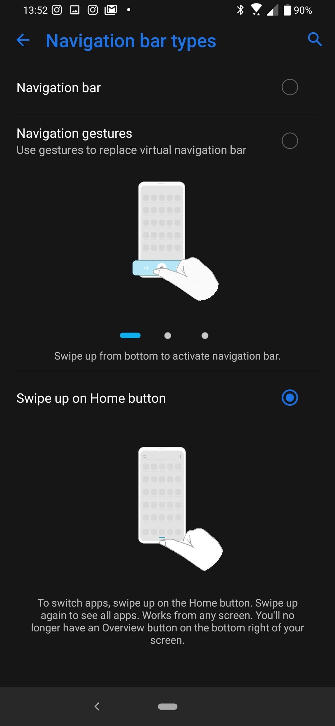 Ve a Configuración>Pantalla>Barra de navegación. Ahora, toca en Tipos de barra de navegación y elige Barra de navegación para los botones habituales de Android o Botón Inicio para utilizar el nuevo sistema de estilo de gestos. Asus también ofrece una tercera opción llamada Gestos de Navegación, que elimina los botones por completo para que puedas volver al inicio o abrir aplicaciones recientes mediante deslizamientos desde la parte inferior de la pantalla.