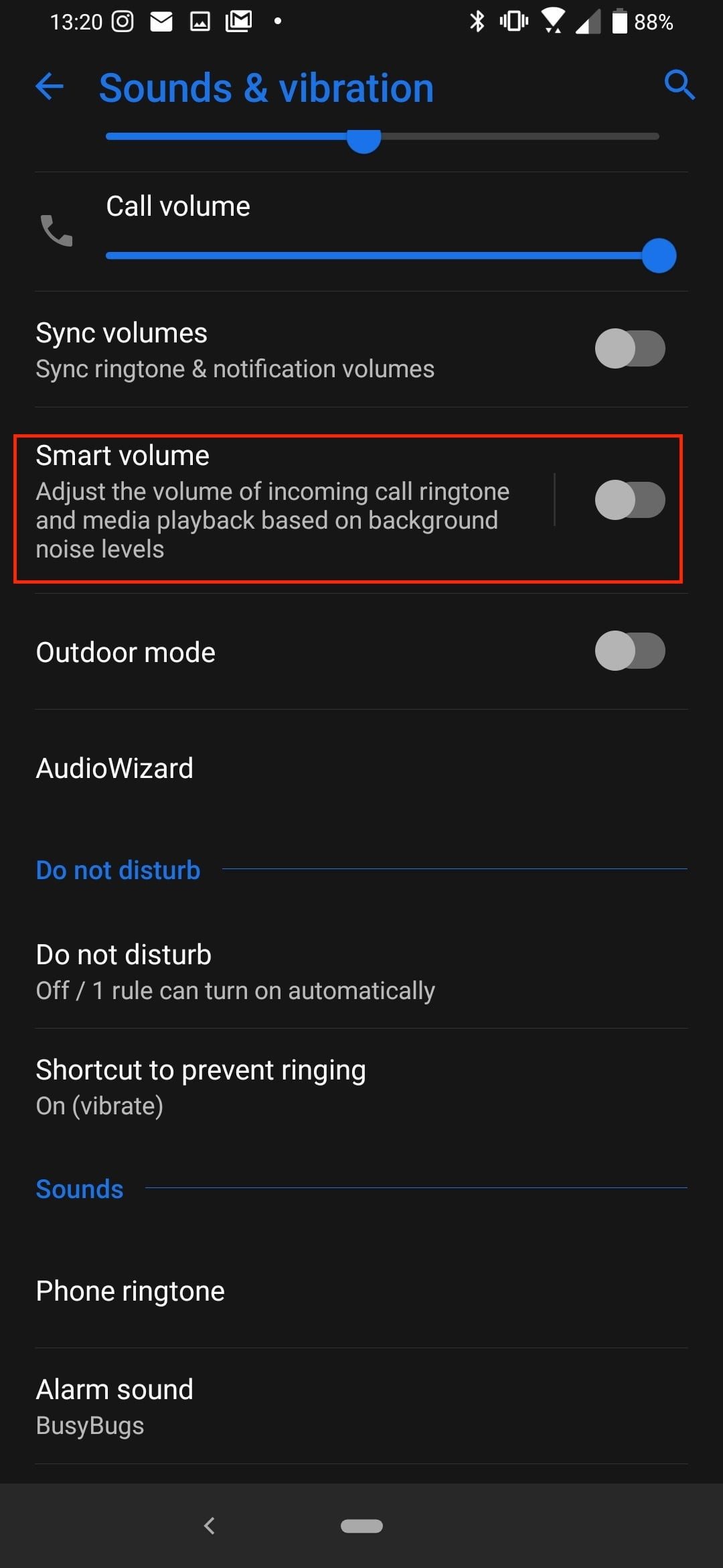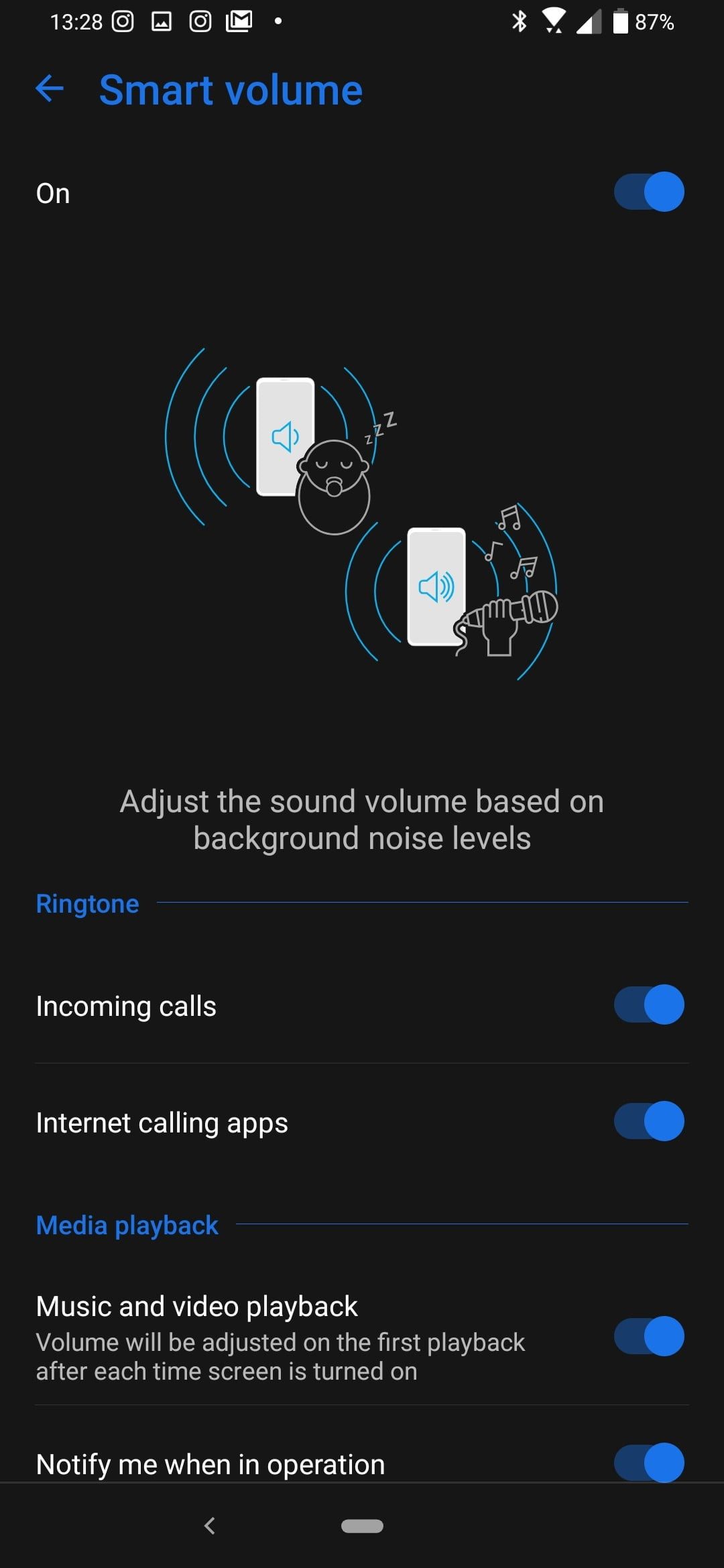 Esta es una característica inusual. El Zenfone 6 puede ajustar el volumen de las llamadas y la reproducción multimedia en función del nivel de ruido que le rodea. ¿Estás en un lugar ruidoso? El volumen subirá. ¿Estás en una sala tranquila temeroso de que el clip de YouTube sea ruidoso? Entonces el volumen se oirá bajo, gracias a esta función. Se encuentra en Ajustes>Sonido y vibración y, a continuación, en Volumen inteligente. También puedes modificar cada aspecto en función de tus preferencias.