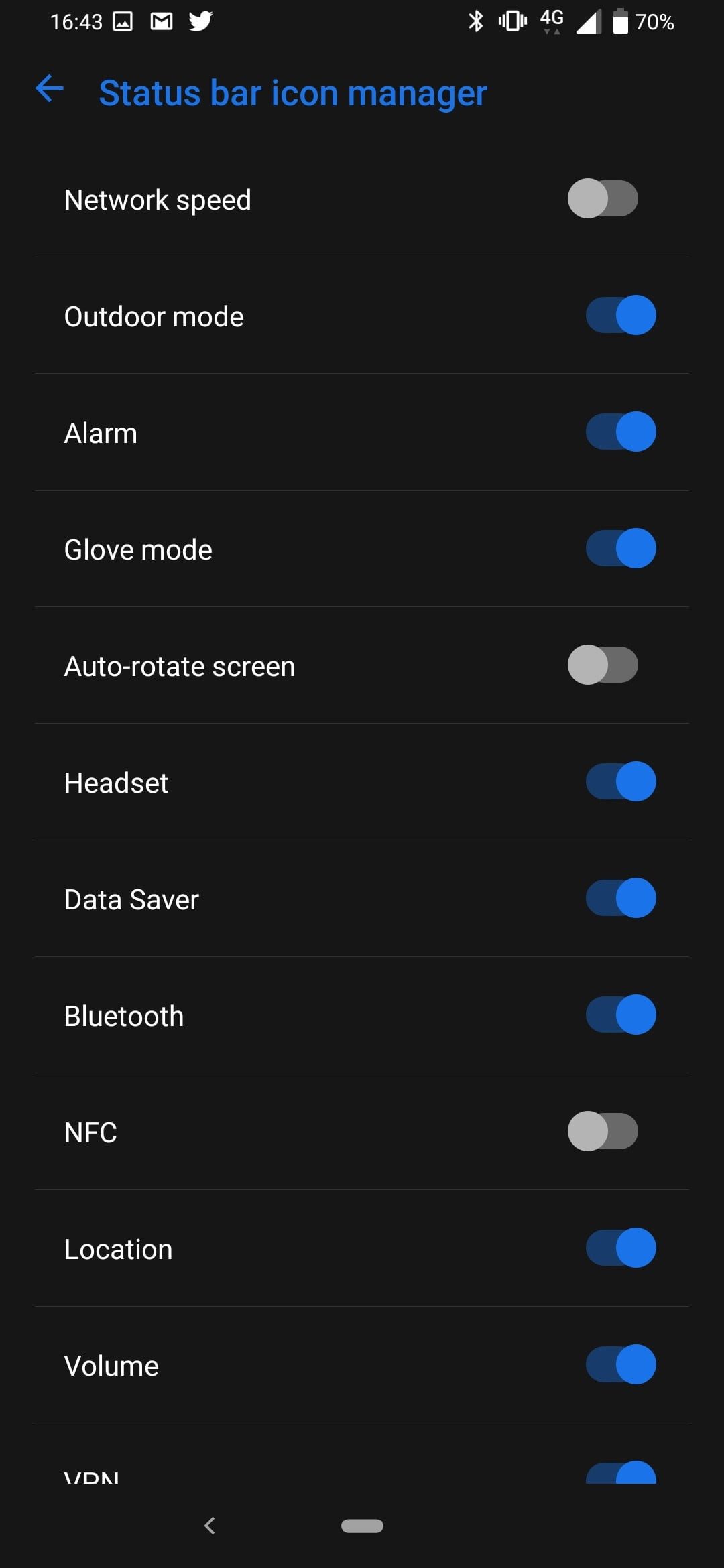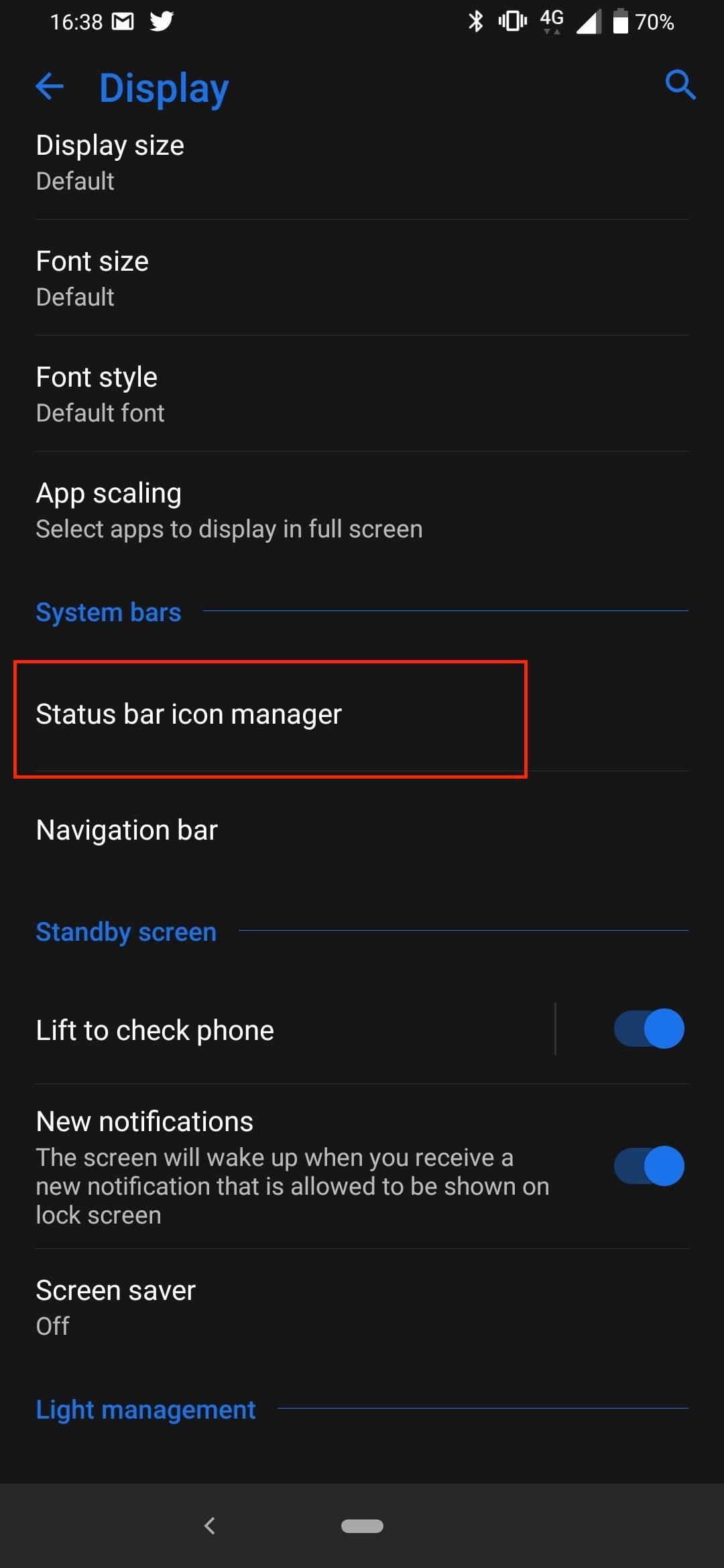 Ve a Configuración>Pantalla>Administrador de iconos de la barra de estado. Aquí puedes activar y desactivar los iconos para aprovechar al máximo el espacio disponible.