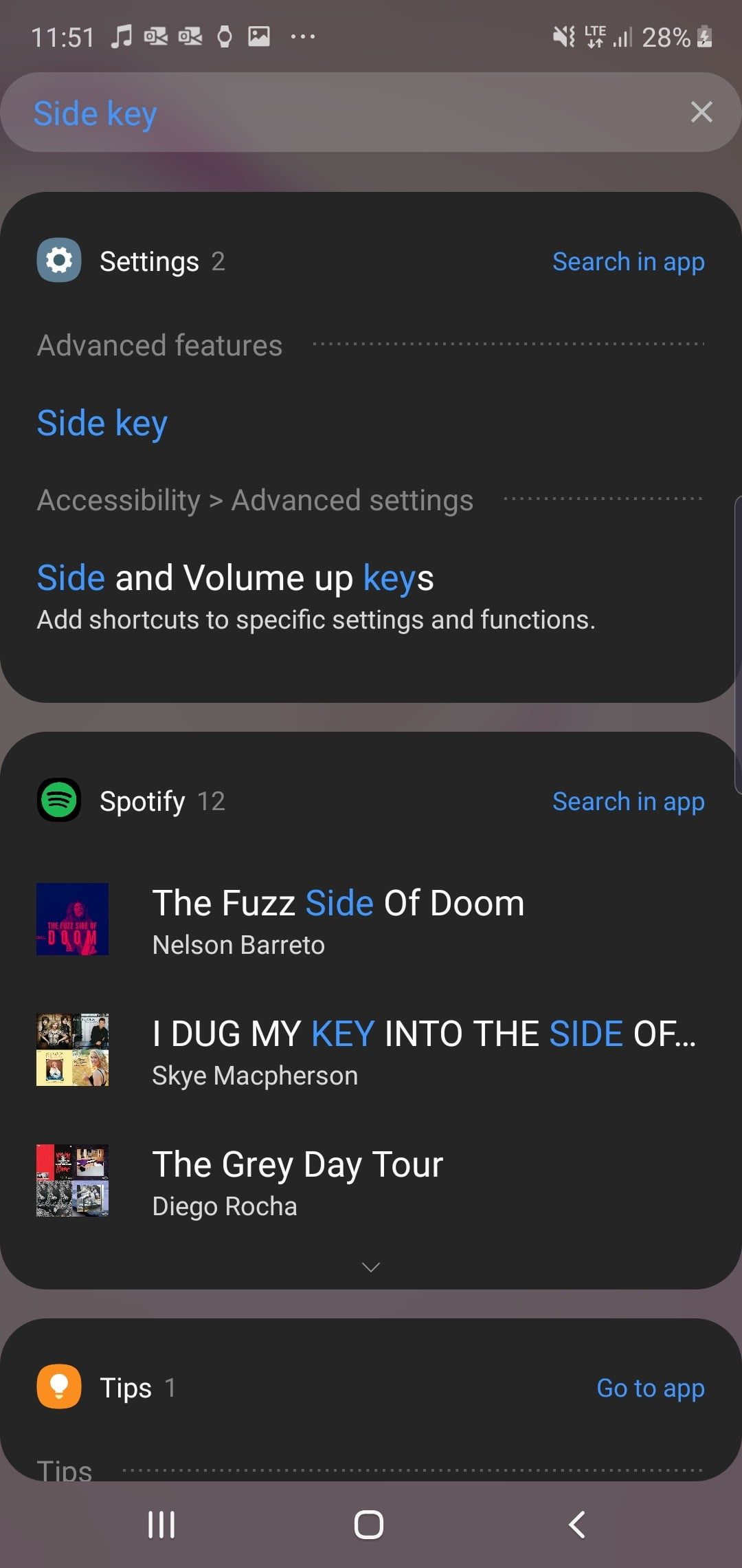 Samsung ha estado mucho tiempo a la vanguardia con una útil aplicación de búsqueda en todos sus dispositivos. Esta función analiza las aplicaciones instaladas, la configuración, los archivos, el calendario, la galería, Spotify y la tienda de juegos en busca de coincidencias relevantes con tu consulta y también ofrece una opción de búsqueda en Google. Es una función rápida, útil y una excelente manera de hacer que tu teléfono sea mucho más accesible. También es fácil acceder a ella. Solo tienes que abrir el cajón de aplicaciones y tocar en la barra de búsqueda en la parte superior.