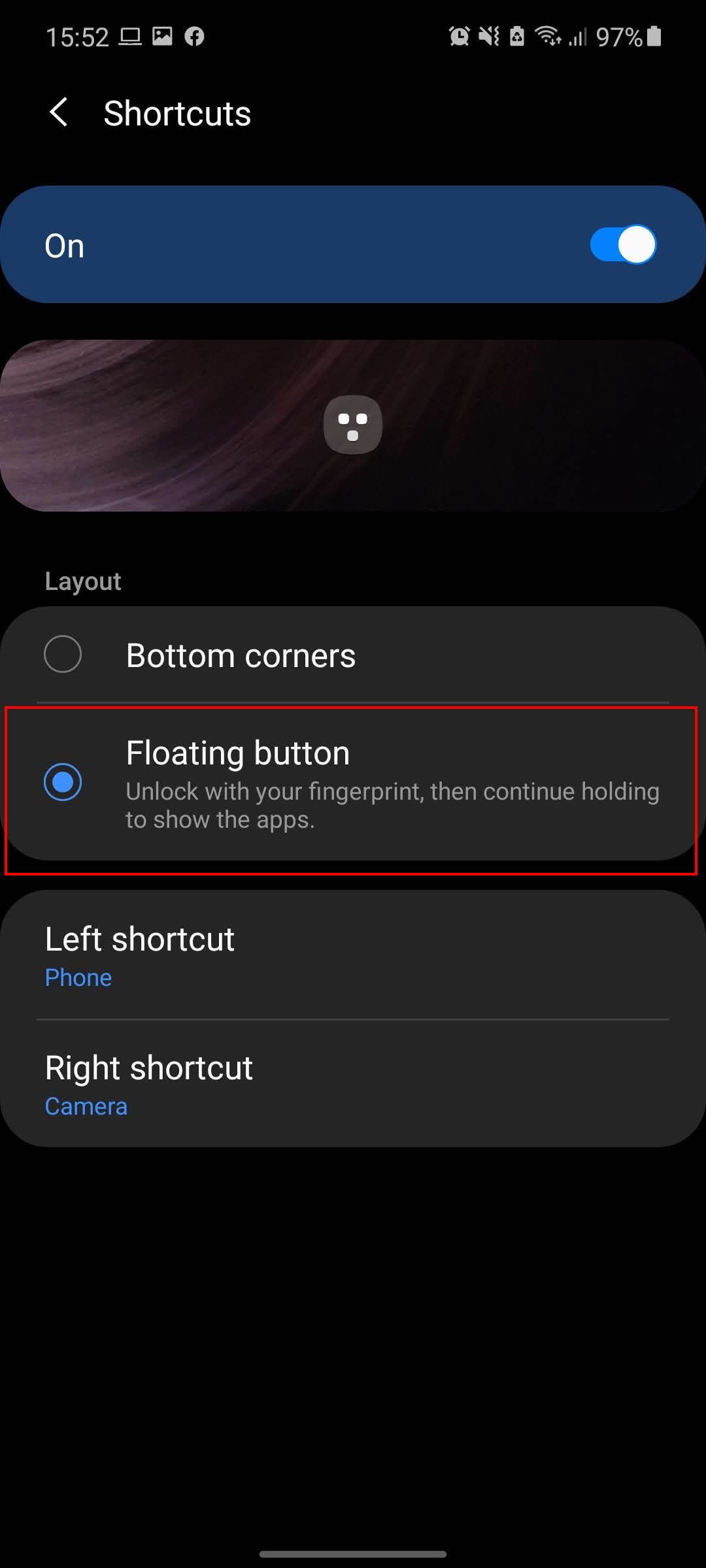 Simplemente ve a Ajustes>Pantalla de bloqueo>Atajos de aplicaciones y luego selecciona Botón flotante. También puedes cambiar las aplicaciones de los atajos, por ejemplo, puedes cambiar el de la Cámara y el de Teléfono por uno para Chrome y Google Maps.