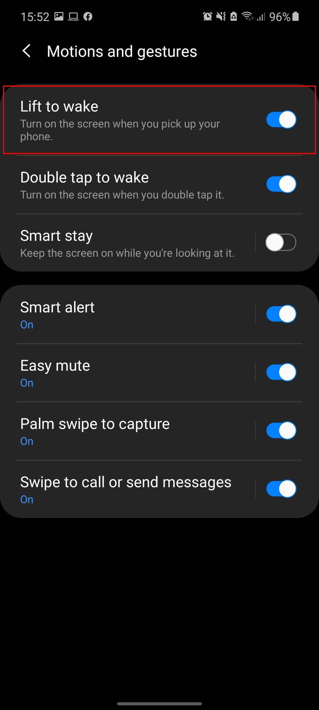 Quizás no sea una función revolucionaria, pero la habilidad de activar o “despertar” tu Note 10 o Note 10 Plus tan solo al levantarlo puede ser útil para ahorrar tiempo. Para activar esta función, ve a Funciones avanzadas>Movimientos y gestos. Una vez que estés en este submenú, selecciona la opción Levantar para activar. Si activas esta función y levantas el teléfono cuando no está en uso, la pantalla de bloqueo se encenderá automáticamente.