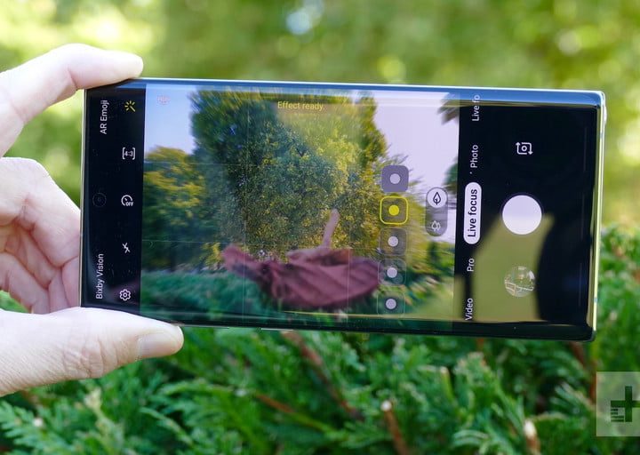 Probablemente en más de una ocasión has tratado de capturar una vista impresionante, pero descubres que tu cámara solo es capaz de capturar una parte de ella. Sin embargo, gracias al lente ultra gran angular de 123° del Galaxy Note 10 y el Galaxy Note 10 Plus podrás ampliar la perspectiva del campo de visión. El lente se puede cambiar tocando el icono con tres árboles, que está ubicado sobre el botón del obturador.