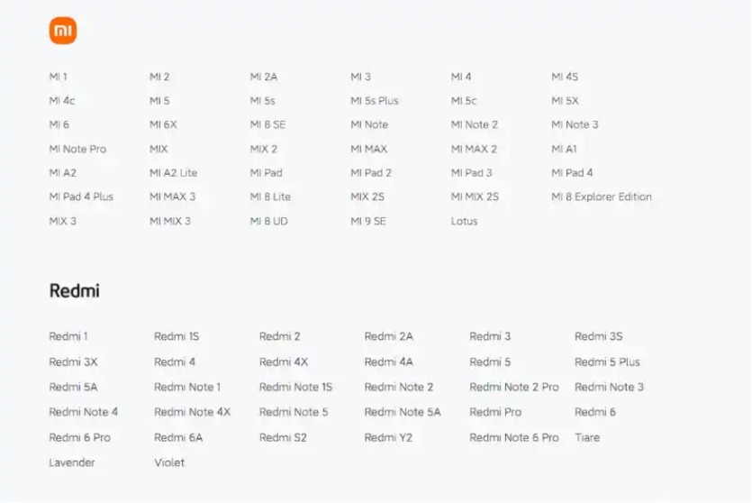 En este listado queda claro cuáles serán los dispositivos que dejarán de recibir actualizaciones de software, parches de seguridad, nuevas versiones de MIUI o Android.