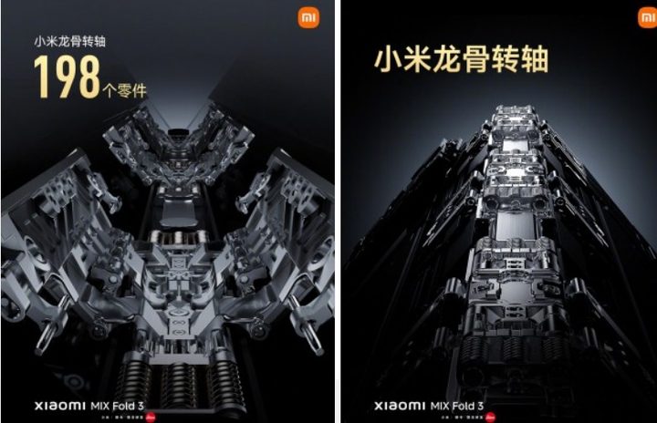 Xiaomi también desarrolló una bisagra patentada completamente nueva que consta de 198 componentes y ocupa un 17% menos de espacio interno. La nueva bisagra viene con una estenosis de 3 elementos y 14 microbisagras que se meten en la pantalla plegable principal para mejorar la durabilidad y un mecanismo giratorio de acero cerámico al carbono. La nueva bisagra de Mix Fold 3 también admite una apertura flotante de 45 ° – 135 ° que le permite apoyar el teléfono como una mini computadora portátil.