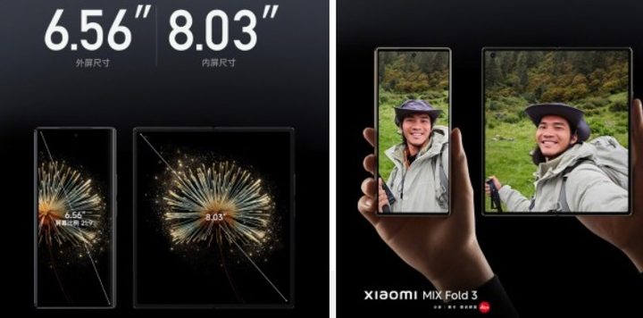 Mix Fold 3 tiene dos pantallas OLED E6. El panel principal LTPO de 8.03 pulgadas trae una resolución de 1,960 x 2,160px y una frecuencia de actualización variable de 120Hz. El panel cuenta con vidrio ultrafino (UTG) y ofrece soporte HDR10 + y Dolby Vision. La pantalla OLED LTPO exterior de 6.56 pulgadas está cubierta con Gorilla Glass Victus 2 y ofrece un brillo máximo de hasta 2,560 nits en modo automático.