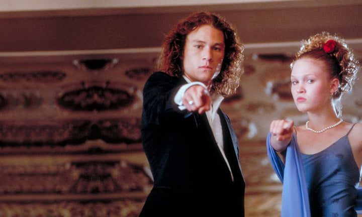 La comedia romántica por excelencia para los adolescentes de los noventa, 10 Things I Hate About You, tiene al menos dos de las cinco mejores escenas del género de esos años. Julia Stiles interpreta a Kat Stratford, una adolescente hermosa, tranquila y abrasiva, pero alejada de las lides románticas; demasiado para la molestia de su hermana menor Bianca, a quien no se le permite tener citas hasta que Kat tenga novio. Pero cuando Kat conoce al apuesto Patrick Verona (Heath Ledger), las cosas empiezan a mejorar para todos.
