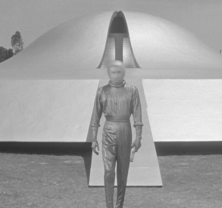 Las películas de extraterrestres de los años 50 tendían a ser historias de invasiones de mal gusto y repetitivas. Sin embargo, The Day the Earth Stood Still ofreció un enfoque diferente del género. La llegada de un alienígena, Klaatu (Michael Rennie) y su robot, Gort (Lock Martin) pone al mundo en pánico. Tanto que nadie parece estar dispuesto a escuchar el mensaje de paz de este ser. Mientras evade a las autoridades, el extraterrestre hace amistad con una viuda de nombre Helen Benson (Patricia Neal) y su hijo (Billy Gray). Con la ayuda de Helen, Klaatu finalmente comparte su advertencia y sus saludos a la humanidad.