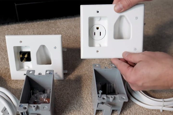 Nada arruina más el atractivo aspecto de un nuevo televisor montado en la pared que una maraña de cables expuestos y colgando desde ella. Afortunadamente, esconder cables dentro de la pared es bastante barato y fácil. La forma más sencilla de lograr esto es con un IWPE (in-wall power extension) o un kit de puente de alimentación. Estos kits vienen con todo lo que necesitas para poner tu televisor mientras ocultas todos los cables de señal (algunos incluso vienen con una herramienta de corte). Pensarás: “¿Por qué no simplemente colocar un cable de extensión o alargador en la pared en lugar de instalar una toma de corriente?” Bueno, porque —en rigor— es contra el Código Eléctrico Nacional (NEC) colocar un cable de alimentación o extensión dentro de una pared. Tampoco es legal colocar cables de bajo voltaje como HDMI dentro de la pared, a menos que tengan clasificación CL3 para uso dentro de una pared, que es una de las razones por las que vale la pena comprar cables HDMI costosos.