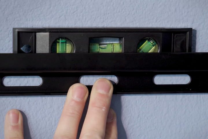 - Puedes forzar un poco el nivelado. No mucho, evidentemente. Tu éxito aquí dependerá de cuán ajustados estén los pernos que sostienen los brazos del montaje en la pared y/o en la parte posterior del televisor. Si no están demasiado apretados, debieras tener un margen de maniobra para ayudar a nivelar el televisor. Como nota al margen, si haces esto y el televisor se sale de la pared, hiciste algo mal… así que ten cuidado.