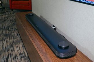 Durante la evaluación las personas se trasladaron a varios puestos de asiento, tratando de obtener la impresión de sonido provenía de la pantalla y no la barra de sonido, y tratando de sentir efectos procedentes de la pantalla en lugar de la barra de sonido debajo de ella.