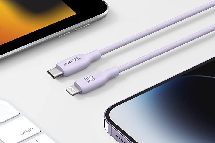 Para los que buscan el paquete completo para su iPhone, este cable cuenta con puerto Lightning, además de que su exterior está hecho con materiales biológicos de plantas, como maíz y caña de azúcar. Soporta carga rápida de hasta 30 W y tiene una vida útil de 20,000 dobleces. Es posible adquirirlo en tamaños de 3 y 6 m. También está disponible la versión de USB-C a USB-C de 140 W.