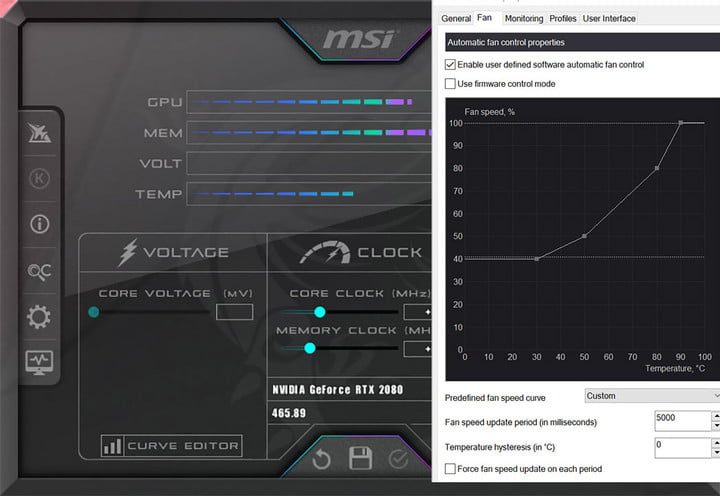 Para ayudar a mantener la temperatura a raya, puedes usar una curva definida para el ventilador. Existen muchas herramientas para esto, pero una buena opción es hacerlo dentro de Afterburner: