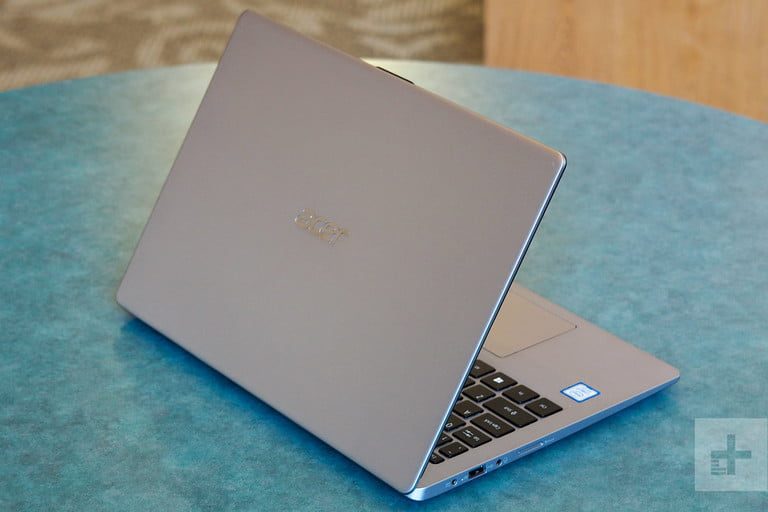 En términos de estética, realmente no hay comparación: el último miembro de Asus de su serie ZenBook 13 300 hereda un esquema de color Royal Blue de gama alta con un llamativo adorno dorado y el icónico remolino ZenBook en la tapa que llevan sus hermanas más caras. La Swift 3 es mucho más conservadora en este terreno y no es que tenga mal aspecto, pero no resiste la comparación con la ZenBook 13. Por otro lado, Asus equipó esta portátil de precio razonable con los mismos marcos finos que los modelos más caros, lo que la hace más pequeño y mucho más moderna que la Swift 3.