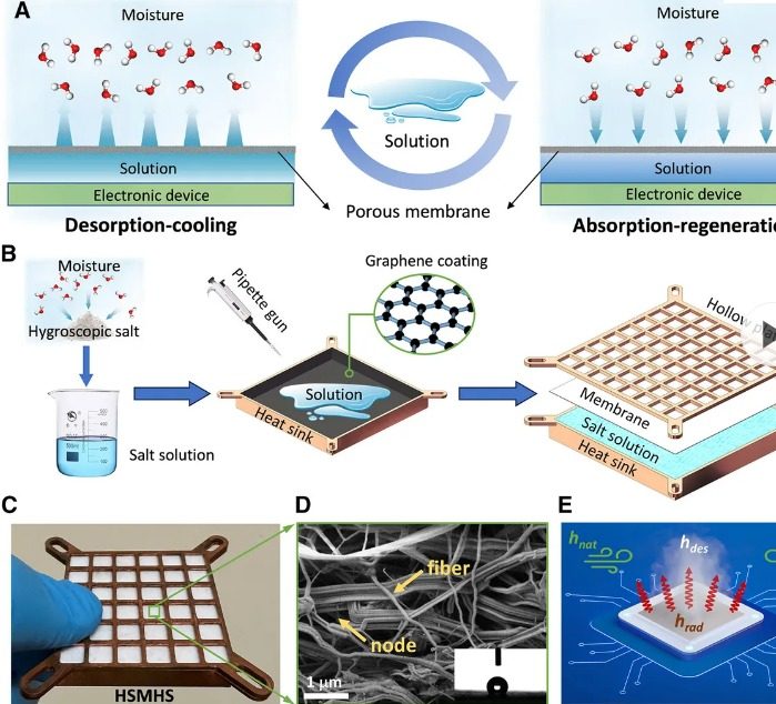 Llamado “disipador de calor hiperscópico encapsulado en membrana cargada de sal” (HSMHS), el sistema utiliza una sal de bromuro de litio confinada por una membrana porosa que permite que el agua se evapore. Según los investigadores de la Universidad de la Ciudad de Hong Kong y la Escuela de Energía e Ingeniería Eléctrica de la Universidad de Ciencia y Tecnología de Huazhong, Wuhan, un sistema informático de prueba ofreció un 32,65% más de rendimiento utilizando esta nueva tecnología de refrigeración pasiva basada en la sal.