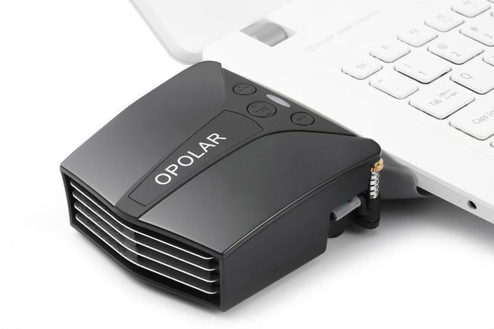 Tal vez no te importe la altura o el ángulo de la computadora portátil (o ya tienes un soporte y no quieras complicar las cosas). En este caso, echa un vistazo al Opolar LC05, que es un accesorio de ventilador que se conecta al costado de tu computadora portátil. Disipa el calor y tiene un pequeño indicador de temperatura para vigilar lo caliente que están las cosas.