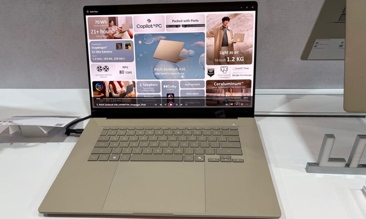 ASUS anunció la Zenbook A16 (UX3607), posicionándose como la laptop impulsada por Snapdragon más rápida jamás creada. Este dispositivo redefine la computación ligera sin sacrificar el rendimiento, equipado con el procesador Snapdragon X2 Elite Extreme de 18 núcleos y una NPU de 80 TOPS, todo integrado en un chasis ultraligero de solo 1.2 kg.