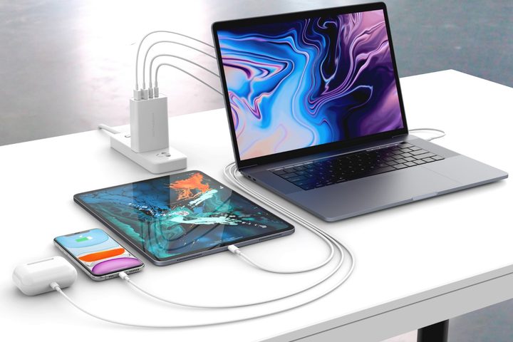 Este cargador, producto de un crowdfunding en Indiegogo y Kickstarter, es el primer cargador de 100W y será único que necesitarás en tu vida digital. Ya no tendrás que imaginarte cargar un dispositivo del tamaño de una tarjeta de crédito con dos puertos USB-C y dos USB-A: es ahora una reliadad. Esto es posible gracias a la tecnología GaN (nitruro de galio), un semiconductor que hace que sea posible obtener esta gran capacidad de carga en tan reducido tamaño.