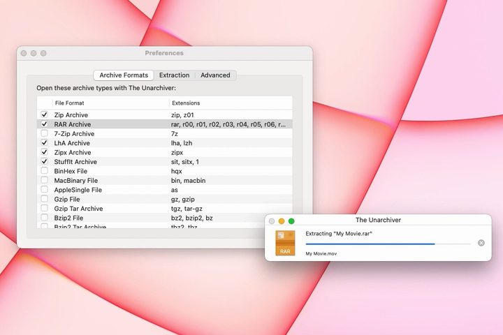 Antiguo pero bueno, Unarchiver supera al descompresor de archivos integrado que viene con macOS, también conocido como Archive Utility. El programa ofrece soporte para un mayor número de formatos de archivo y una funcionalidad adicional más parecida a 7-Zip que otras ofertas disponibles en la web. Aunque Unarchiver carece de la capacidad para crear archivos RAR, te permite abrirlos en tres pasos.