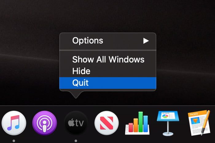 Para cerrar correctamente una aplicación, haz clic con el botón derecho en el ícono y selecciona «Salir». También puedes cerrar las aplicaciones usando el atajo de teclado «CMD» + “Tab” + «Q», que cierra cualquier aplicación. Tener demasiadas aplicaciones abiertas a la vez ralentiza seriamente su sistema, por lo que debe ser una prioridad el cerrar (y bien) las aplicaciones.