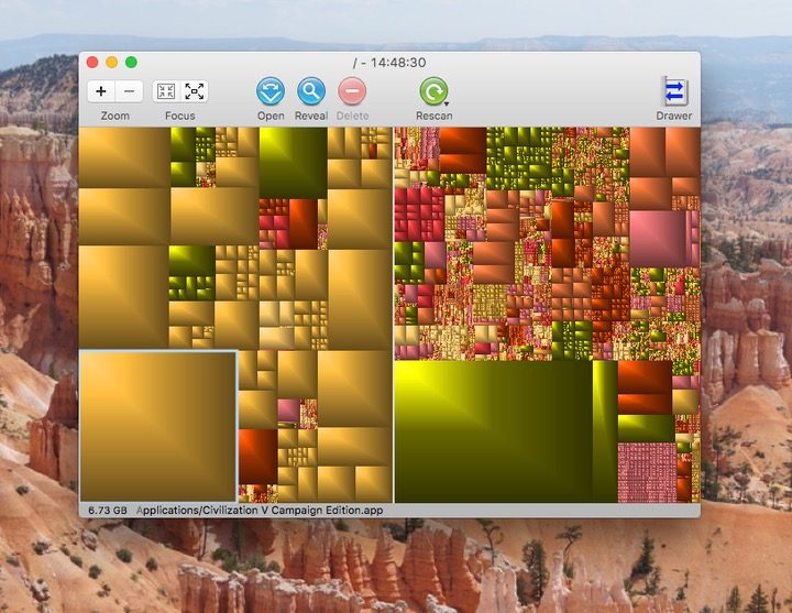 Y hablando justamente de esto: es probable que las aplicaciones no sean las que ocupan la mayor parte del espacio de tu disco. Son tus archivos. ¿Pero cuáles? La aplicación gratuita Grand Perspective te ofrece una vista panorámica de tus archivos, con los más grandes tomando formas también más grandes. Explora esto y ve si hay algún archivo grande que desees eliminar o trasladar a un disco duro externo para su almacenamiento a largo plazo.