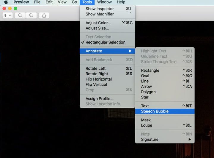 Paso 2: tienes varios tipos diferentes de opciones de anotación para usar en Vista Previa. Para comenzar con ellos, dirígete al menú en la parte superior de la pantalla y selecciona Herramientas, seguido de Anotar. En este menú, elige la opción superior que dice Resaltar texto.