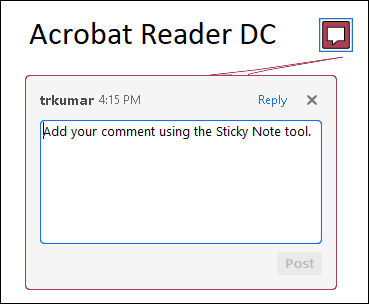 Esto creará una nota adhesiva o una nota expandible que puedes colocar en el PDF. Haz clic en el icono de la nota adhesiva, luego haz clic en cualquier lugar del PDF donde desees colocar tu comentario. Escribe el contenido completo y luego selecciona Publicar.