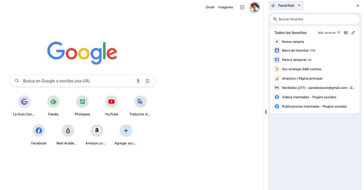 El panel lateral administra las funciones más importantes de Chrome. En él encontrarás tu lista de lectura, favoritos, historial, búsqueda de Google, entre otras.