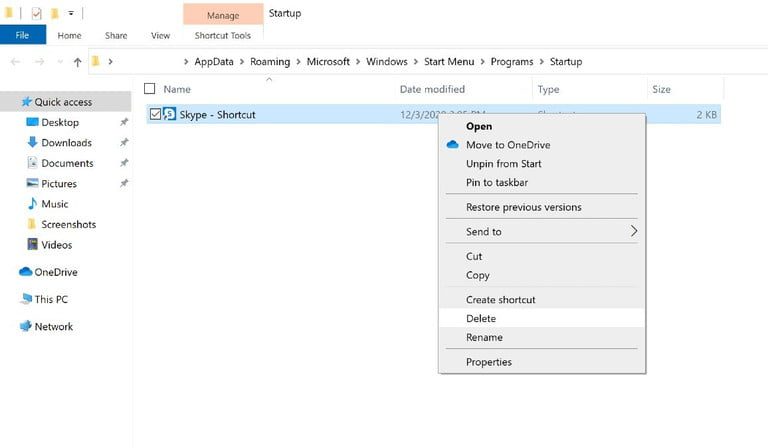 Si no ves tu app Skype pero se sigue activando al iniciar sesión, pudo haber sido habilitada manualmente; también hay una solución para eso. Mantén presionada la tecla Windows y la tecla R para abrir tu casilla de diálogo e introduce “shell:arranque” para abrir el folder Arranque. Si ves el atajo de la app Skype en el folder, selecciónalo y haz clic con el botón derecho del mouse para borrarlo; esto deberá solucionar el problema.