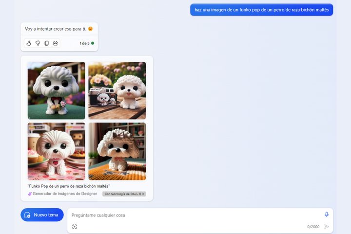 Por otro lado, si utilizas el chat de Bing, puedes seguir perfeccionando la imagen añadiendo más solicitudes. No es necesario que repitas tu solicitud inicial, ya que tus indicaciones se van sumando. Por ejemplo, puedes hacer una solicitud de seguimiento del tipo: “¿Puedes rehacer la primera imagen, esta vez utilizando un estilo de caricatura?”.