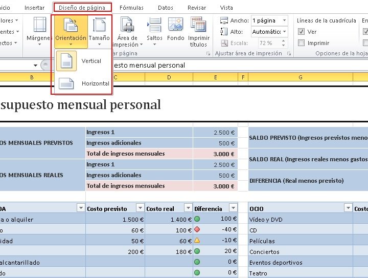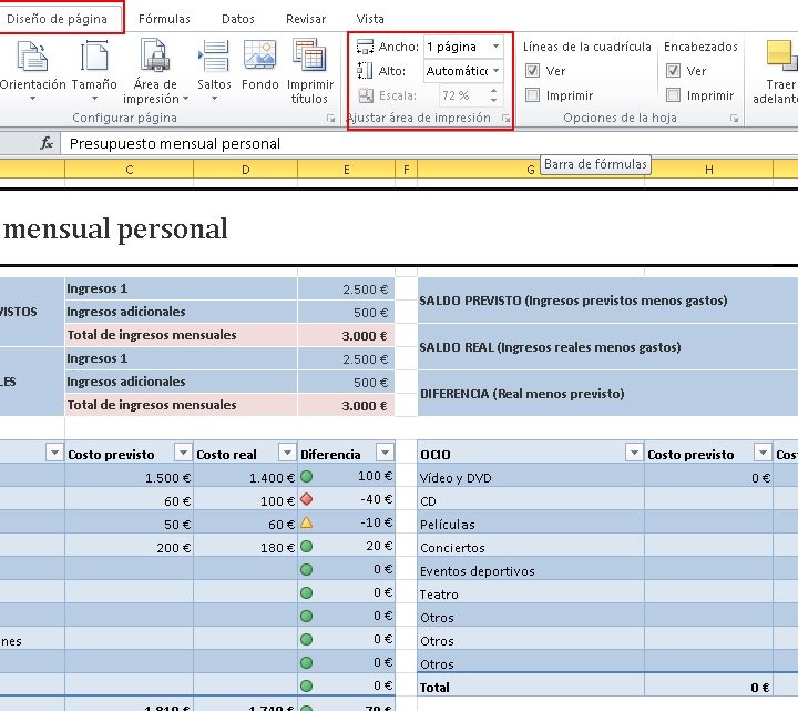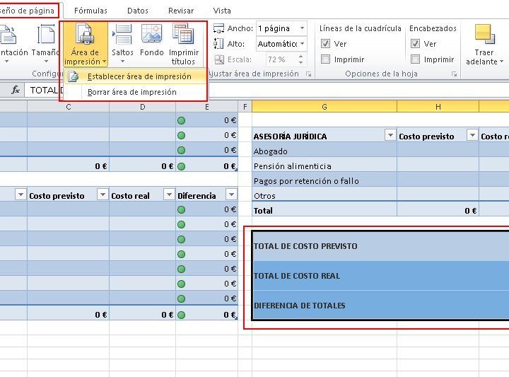 No es necesario que imprimas todo el documento de Excel. Si lo deseas, puedes imprimir solo una parte de la hoja de cálculo, por ejemplo, la tabla donde está el resumen final de tus gastos. Para ello, necesitas definir el área de impresión, que abarca el rango o los rangos de celdas que hayas seleccionado. Para definirla, debes seguir los siguientes pasos: