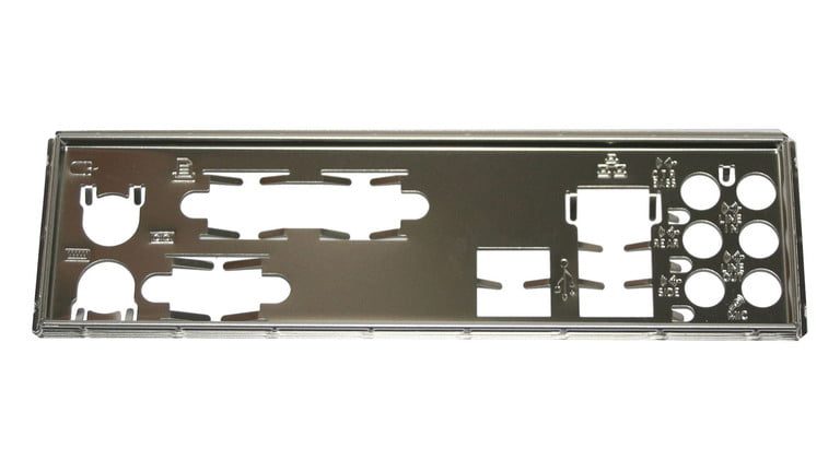El último paso antes de llegar a la tarjeta madre es instalar la placa trasera. Este es el panel plateado o negro que protegerá los puertos traseros de tu tarjeta madre; viene con esta, en su caja.
