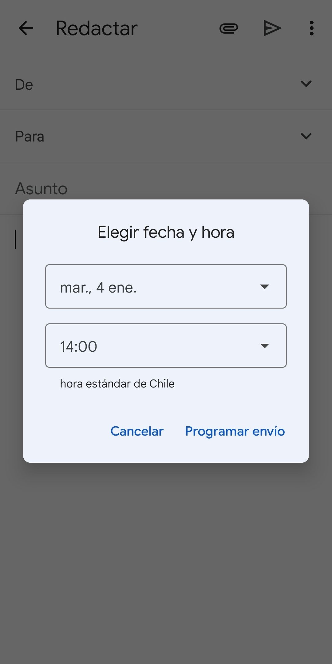 Paso 4: selecciona la fecha y hora en la que quieres que llegue tu correo.