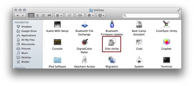 Paso 1: ve a Utilidad de Discos de MacOS dentro de la carpeta Aplicaciones o busca la aplicación utilizando Spotlight. Cuando la encuentres, inicia el programa.