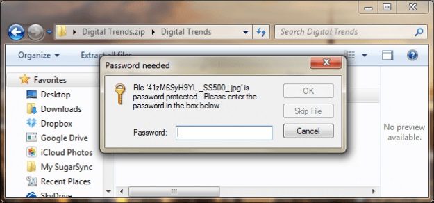 Paso 4: una vez creado el archivo zip protegido por contraseña, pruébalo para asegurarte de que funciona correctamente intentando acceder a cualquiera de los contenidos que contiene. Una vez que sepas que está debidamente protegido, elimina la carpeta original para que ya no se pueda acceder a ella. No hay necesidad de tener en dos sitios los mismos datos, sobre todo porque la carpeta original permanecerá desprotegida.