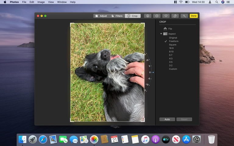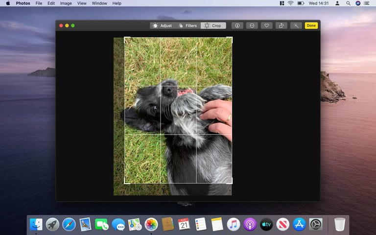 Paso 1: Abre la imagen que deseas editar en Fotos. Haz clic en el botón de Editar en la esquina superior derecha (en este momento el sistema te podría pedir que agregues la foto a tu biblioteca). Ahora verás tres botones en la parte superior: Ajustar, Filtros y Recortar.