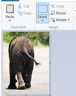 Paso 1: Abre la aplicación de Paint y usa Archivo>Abrir para abrir la imagen que quieras editar. Haz clic en el botón de Seleccionar y arrastra la herramienta para rodear la porción de la imagen que deseas recortar.