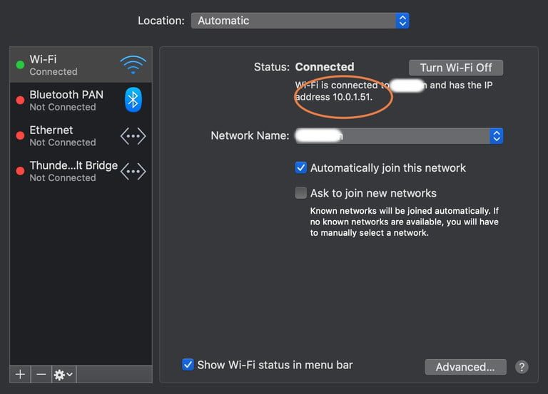 MacOS hace que sea muy fácil encontrar tu dirección IP en la configuración correcta.