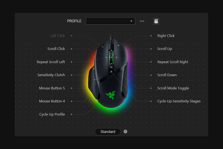 Una de las mayores fortalezas del Razer Basilisk V3 es su amplia gama de botones programables. Con un total de 11 botones, incluyendo los inputs hacia arriba y hacia abajo de la rueda de desplazamiento y el botón de cambio de perfil en la parte inferior del mouse, puedes personalizar los comandos según tus necesidades. Cada uno de estos botones se puede configurar para realizar una variedad de acciones, desde simples clics hasta complejas combinaciones de teclas o macros.