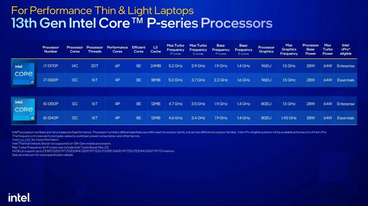 Estos procesadores alcanzan un máximo de seis núcleos P y ocho núcleos E, y son en su mayoría una actualización de la generación anterior. En general, Intel dice que se puede esperar una mejora de alrededor del 10% con respecto a la generación anterior. Sin embargo, Intel dice que muchos diseños que anteriormente usaban la serie P se están moviendo a la serie H, lo que significa que algunas máquinas podrían ver un mayor salto en el rendimiento.
