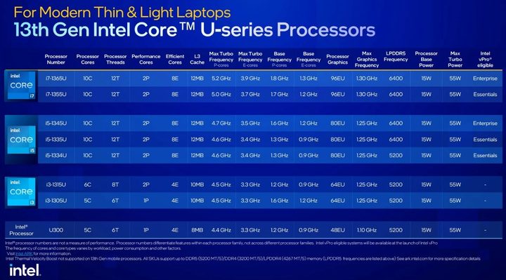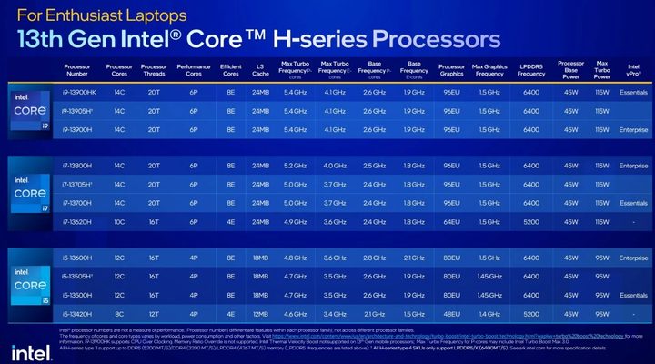 Intel se apega a su marca de las series H, P y U para sus procesadores, señalando procesadores de 45 vatios, 28W y 15W, respectivamente. La compañía también se apega a la gama de la serie HX de 55W que introdujo el año pasado en computadoras portátiles como la MSI GT77 Titan, e Intel dice que espera muchas más computadoras portátiles equipadas con HX este año.